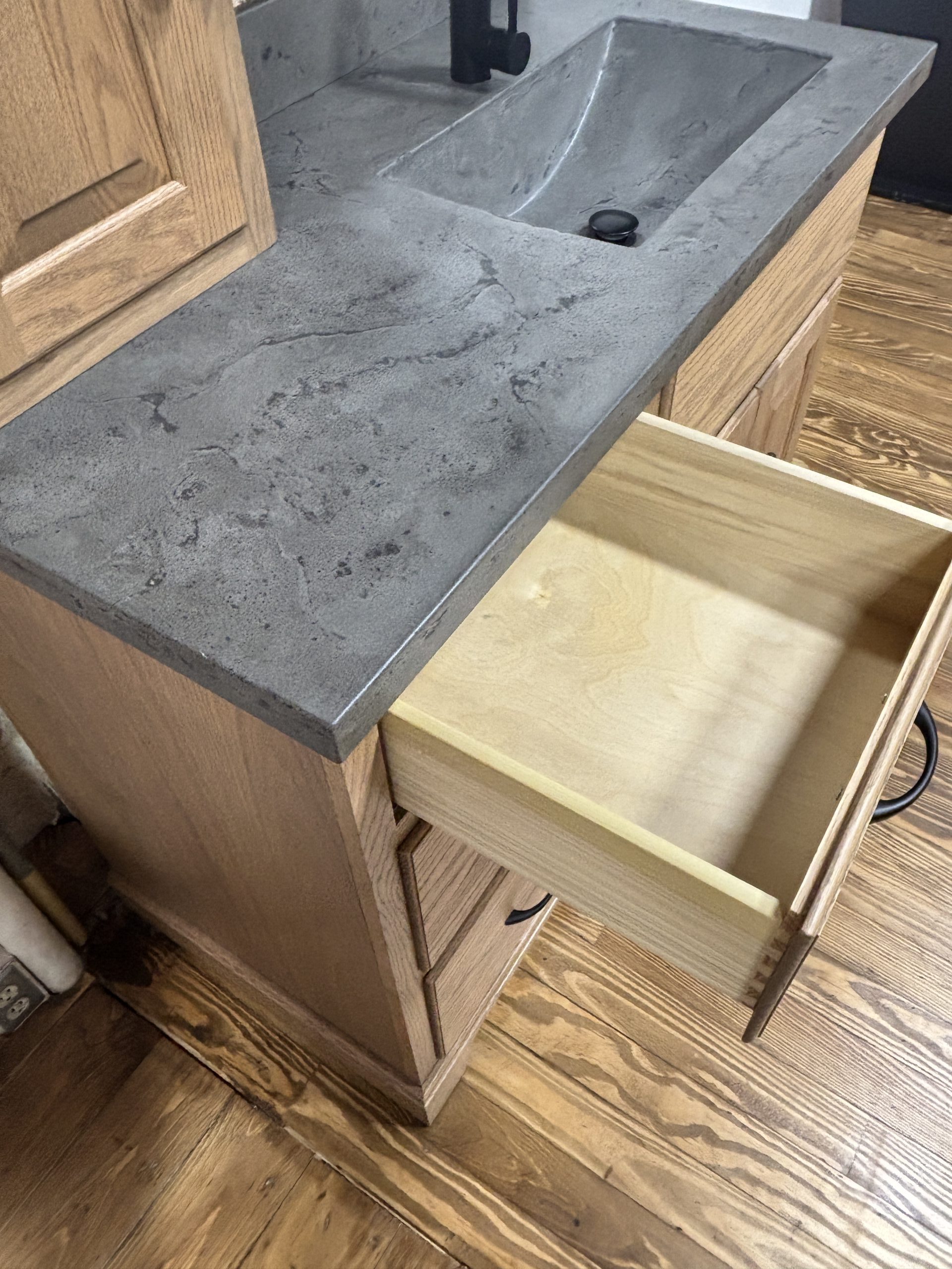 Concrete Countertop (Warm Grey Distressed) with 11 x 19 Rectangular Integrated Sink