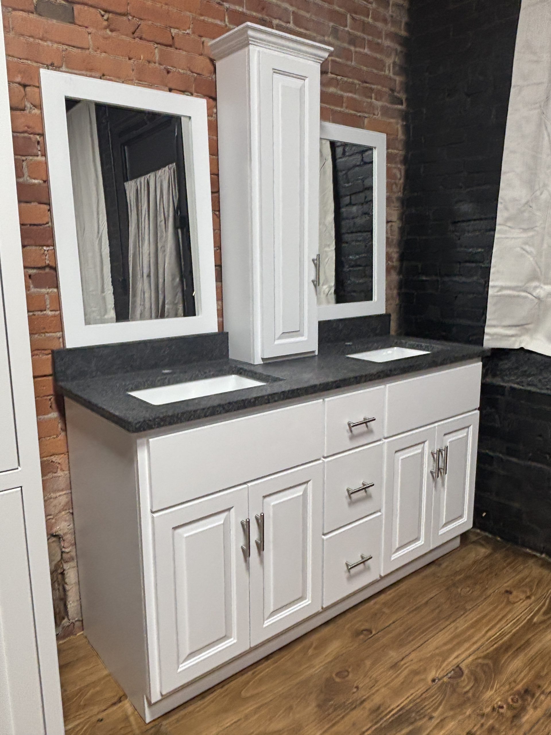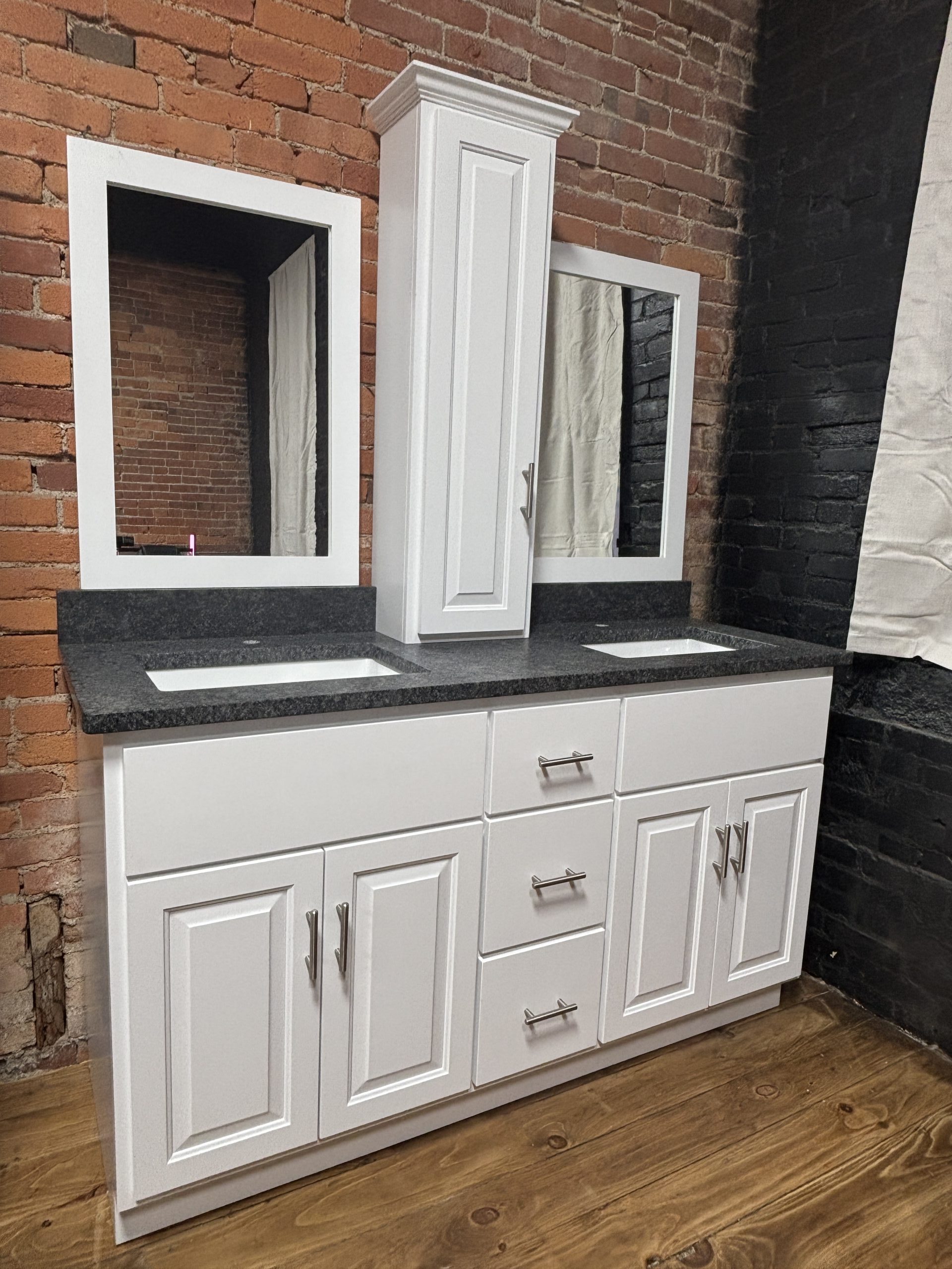 60” Wilkerson Style Double Vanity, Tower, Mirror, and Countertop Combo